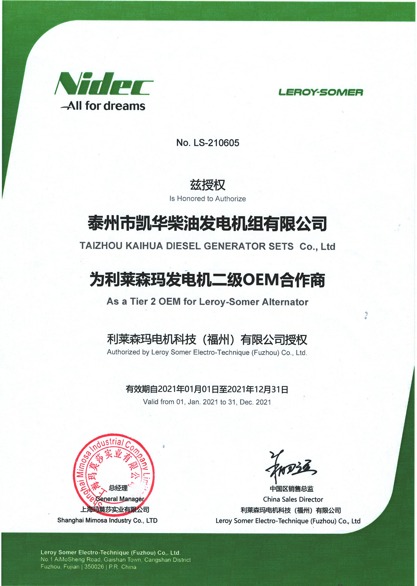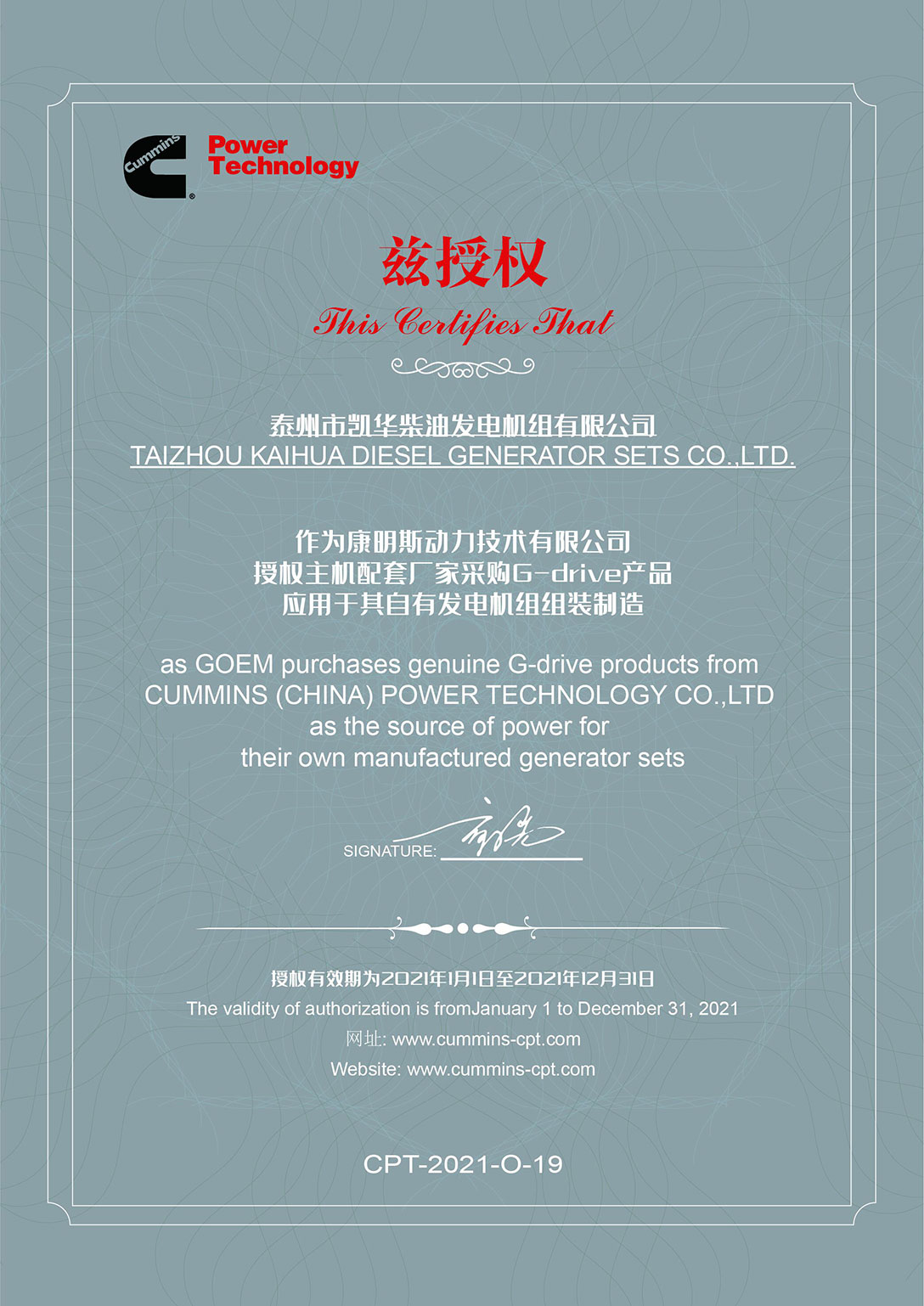 泰州市凱華柴油發(fā)電機組有限公司創(chuàng)建于2003年,是一家集柴油發(fā)電機組燃氣發(fā)電機組的研發(fā)、生產(chǎn)、銷售為一體的高新技術(shù)民營企業(yè),公司座落于“漢唐古郡,淮海名區(qū)”,具有“鳳凰城”美稱的祥泰之州——江蘇省泰州市,地處中國經(jīng)濟最發(fā)達的長三角經(jīng)濟圈,水陸空立體交通,地理位置十分優(yōu)越。公司目前注冊資本金11800萬元人民幣,生產(chǎn)基地占地六十畝,現(xiàn)有各類高素質(zhì)員工一百多名,專業(yè)技術(shù)人員達46人,其中高級技術(shù)人員16人,年銷售額近6億元。 公司主營產(chǎn)品:3~3000KW陸用柴油發(fā)電機組,15~600KW移動拖車電站,12~1000KW船用應(yīng)急柴油發(fā)電機組,各種靜音型、中高壓、多機并聯(lián)、燃氣等特種機組以及進口系列柴油發(fā)電機組,可滿足不同客戶的一切電力需求,還可滿足用戶不同電壓、不同頻率的要求。凱華公司是康明斯品牌的授權(quán)代理商,專業(yè)生產(chǎn)供應(yīng)康明斯柴油發(fā)電機組。